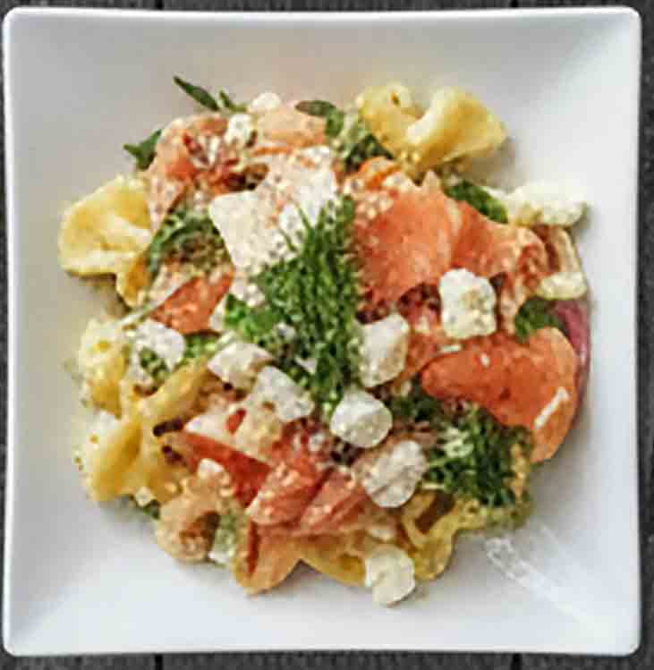 • mit fr. Champignons, geschnetzeltem Rindfleisch in Tomaten-Sahncesauce