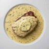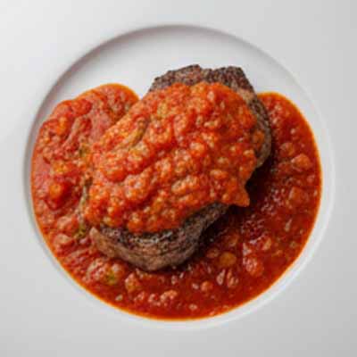 mit Champignons & fr. Paprika in pik. Tomatensauce