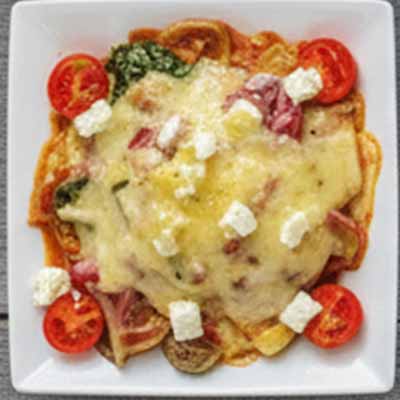 mit Sahnesauce, Spinat, Gorgonzola, Knoblauch überbacken